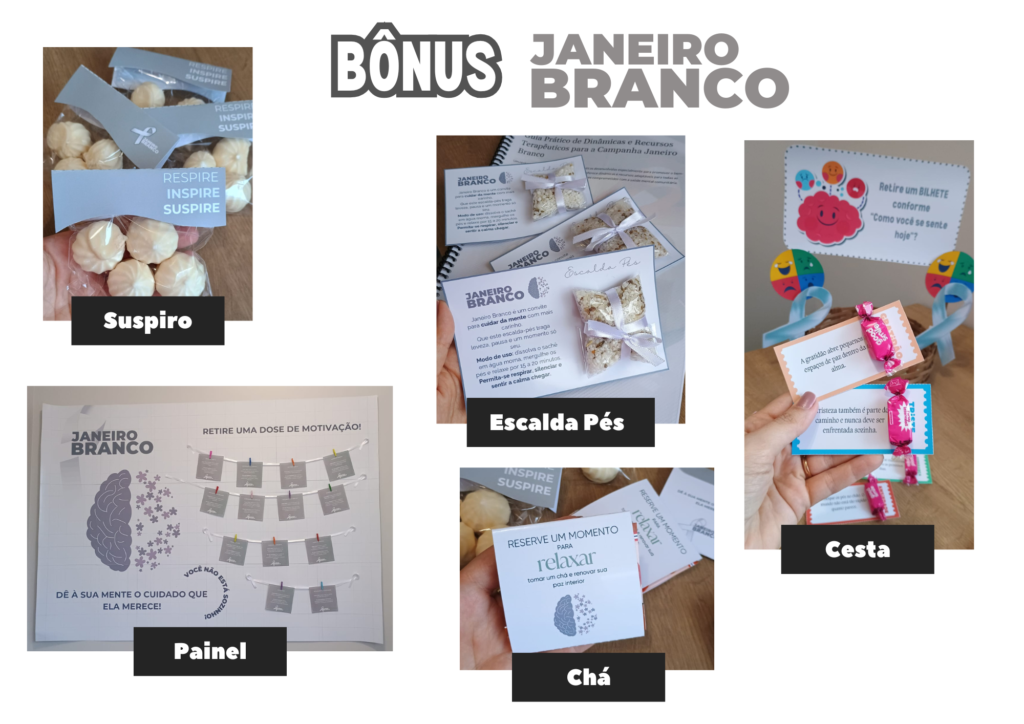 Você também recebe dinâmicas e recursos terapêuticos que são o elemento que torna sua ação única, despertando reflexão, acolhimento e impacto verdadeiro.
